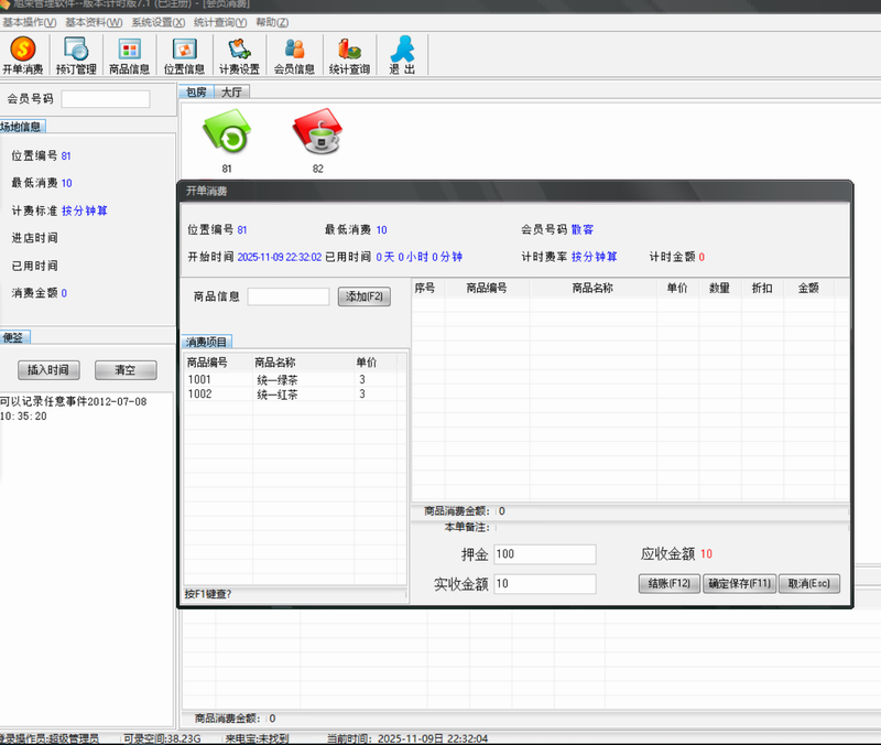 1、前台收银,可以按座位类型计时。